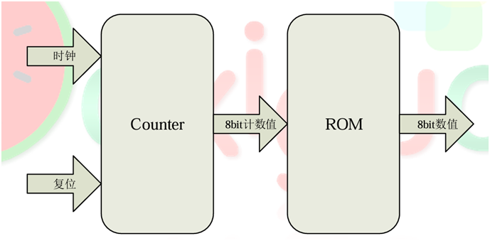 这里用到了计数器和ROM 两个模块 。在TOP程序中如何用代码组织起来。没有任何诀窍,就是把代码读熟,把实物和代码对上号。